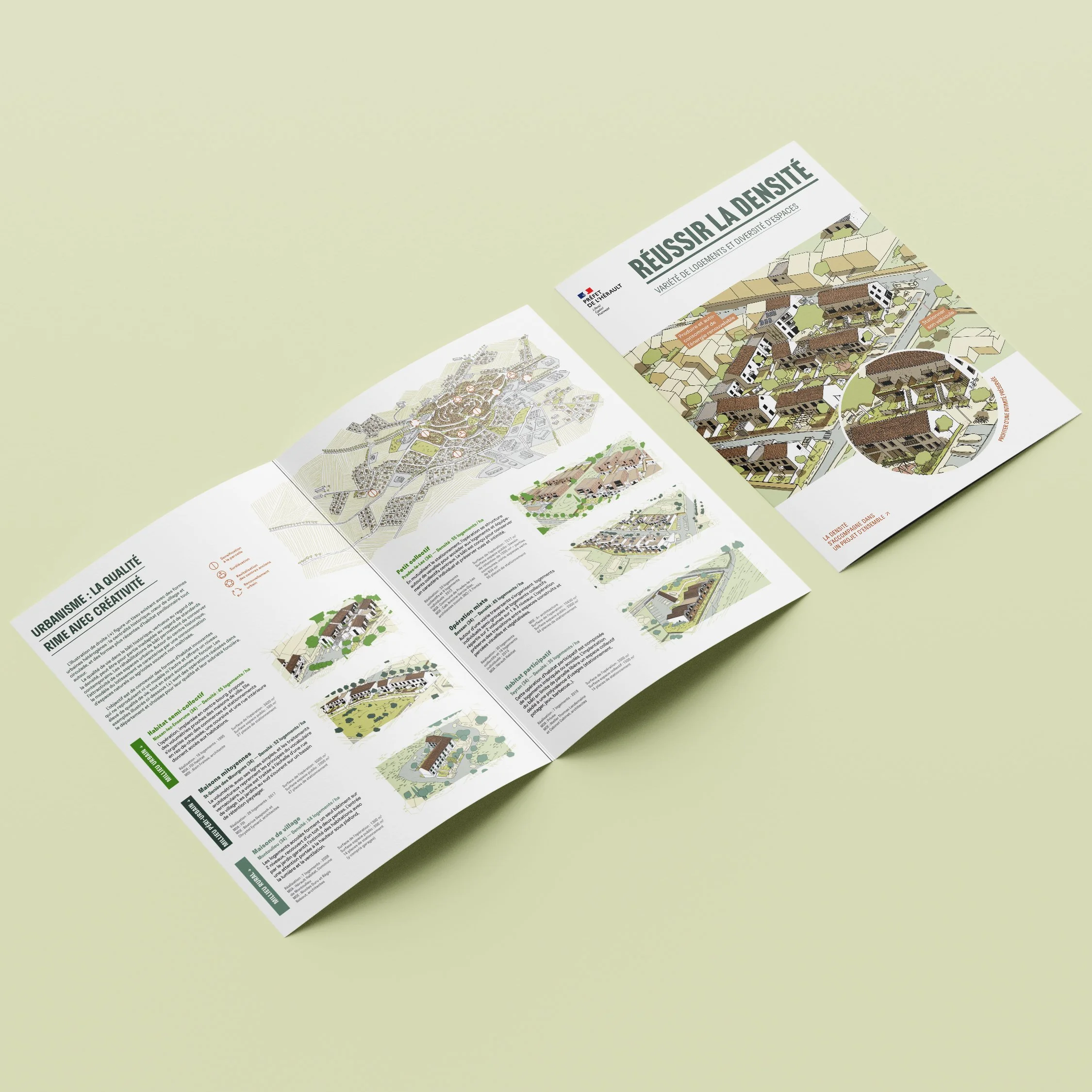 Le client souhaitait réaliser une plaquette thématique, destinée aux collectivités, pour encourager le recours à la densification plutôt qu’à l’étalement urbain. L’ouvrage devait être pensé pour rassurer, inspirer et dé-diaboliser la densification urbaine.